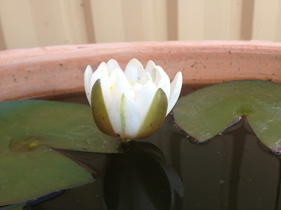 | It's third summer and my water lily is finally flowering! |